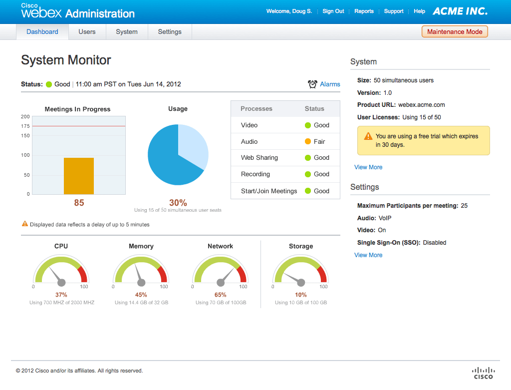 Designed product components and page layouts for WebEx products using Adobe Fireworks and hand-coded high-fidelity prototypes for web-based applications.